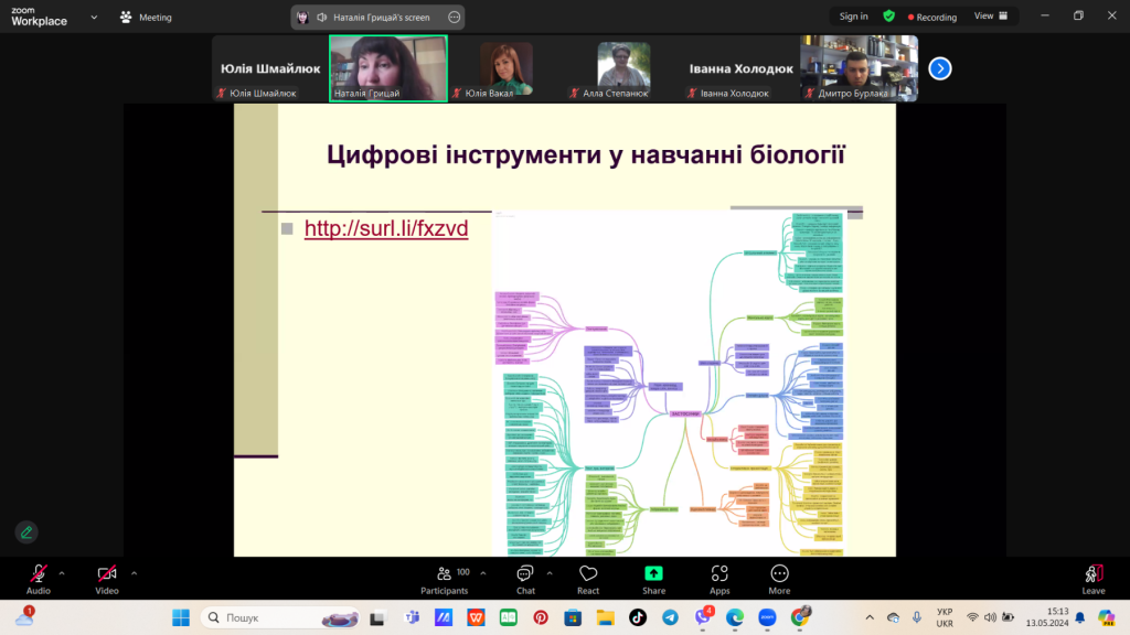 13 травня 2024 року НПП та здобувачі освіти долучились до гостьової лекції докторки педагогічних наук Наталії ГРИЦАЙ з теми “Цифровий урок біології: особливості підготовки, цифрові застосунки, методика проведення” в межах роботи Відкритого міжуніверситетського лекторію “Професійно-методична підготовка педагога з проблем природничої освіти”.