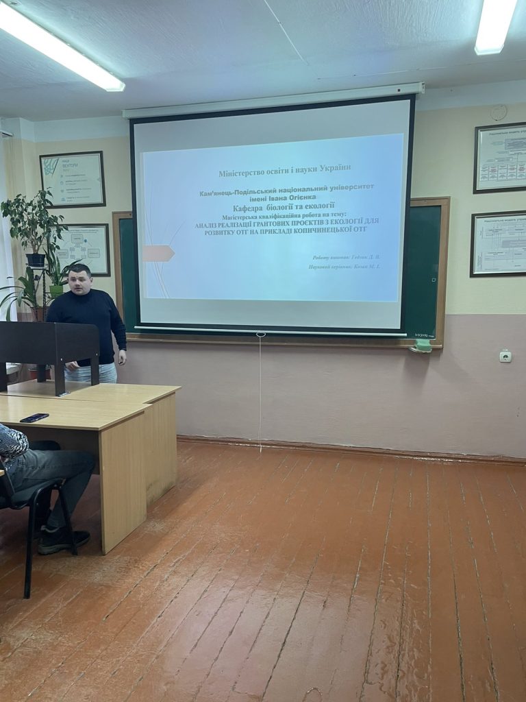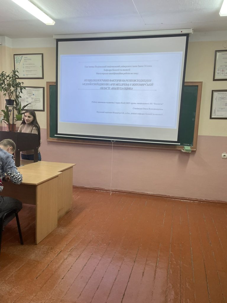 24 грудня 2024 року відбувся захист кваліфікаційних робіт здобувачів магістерського рівня вищої освіти за спеціальністю 101 Екологія. Голова екзаменаційної комісії – д.с.-г.н., професор Олександр ЛЮБИНСЬКИЙ. У складі комісії працювали д.б.н, професор Людмила ЛЮБІНСЬКА та директор НПП “Подільські Товтри” Руслан ЯКУБАШ.