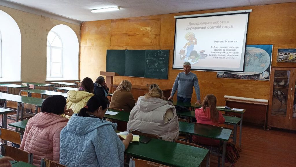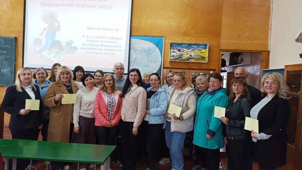 20 травня в межах співпраці ЦПРПП Кам’янець-Подільської міської ради та К-ПНУ імені Івана Огієнка проведено сертифікований семінар-практикум «Дослідницька робота в природничій освітній галузі» для професійних спільнот вчителів біології та інтегрованих курсів природничої освітньої галузі на базі природничо-економічного факультету. Спікер Микола МАТВЄЄВ, кандидат біологічних наук, доцент кафедри біології та екології К-ПНУ імені Івана Огієнка, окреслив основні етапи виконання науково-дослідної роботи та акцентував увагу вчителів на здійсненні інтерпретації результатів науково-дослідної діяльності у вигляді публікацій наукових статей, тез доповідей науково-практичних конференцій, видання навчальних посібників, практикумів та захисту результатів дослідження на конкурсах. У ракурсі практичної частини учасників заходу ознайомлено з ботанічним і зоологічним різноманіттям природи на базі музею природи Поділля.