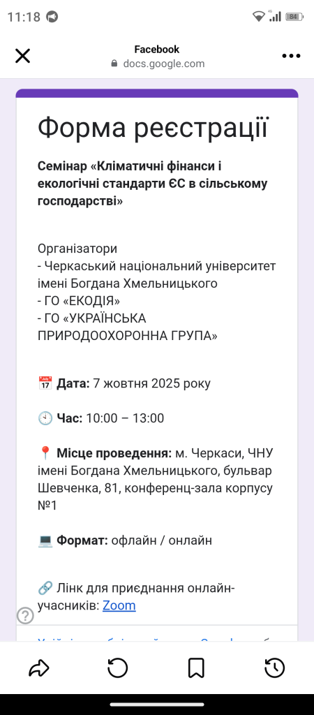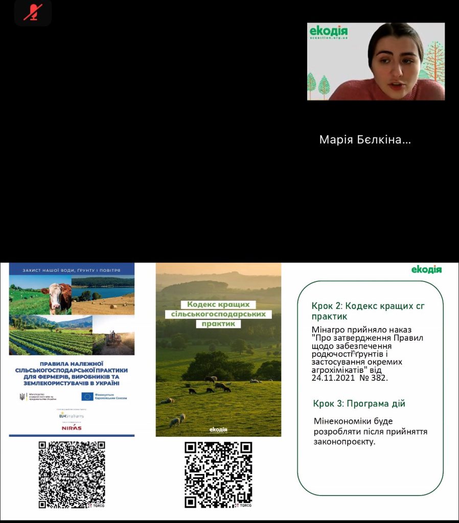 Семінар проходив у межах Українського кліматичного тижня — громадської ініціативи, спрямованої на підвищення обізнаності про кліматичну кризу, її наслідки та важливість спільних дій для її подолання. Спікери обговорювали ключові аспекти екологічних вимог до аграрного сектору в рамках євроінтеграції, Кодекс кращих сільськогосподарських практик, а також питання раціонального використання земель і можливості отримання карбонових кредитів.