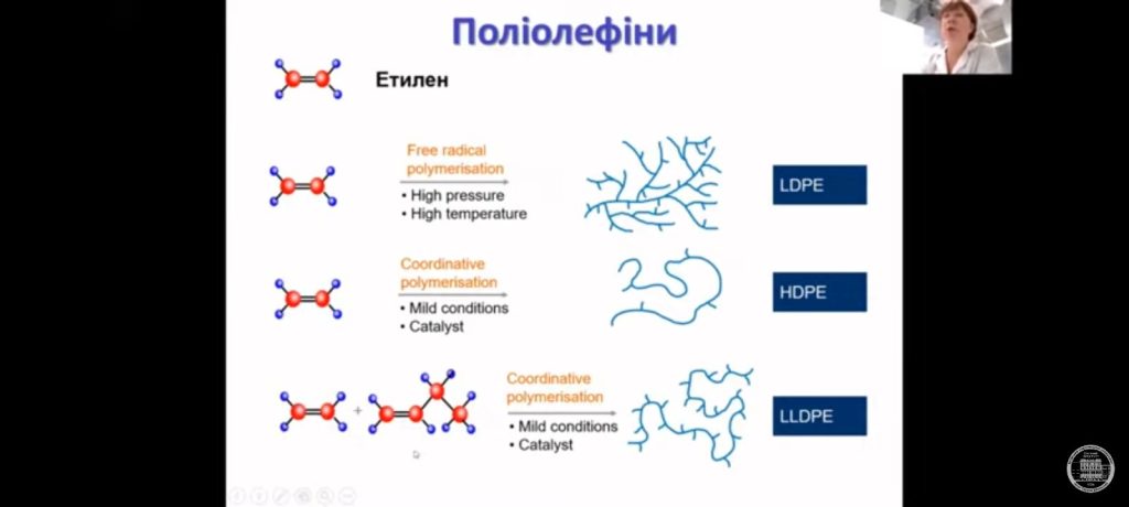 У межах заняття було розглянуто ключові аспекти, зокрема методи одержання полімерів, проблему накопичення пластикових відходів та особливості поводження з ними, маркування полімерної упаковки, а також використання біорозкладних матеріалів як екологічної альтернативи. Окрему увагу було приділено співвідношенню «полімери vs довкілля» та пошуку ефективних шляхів мінімізації негативного впливу на природне середовище.