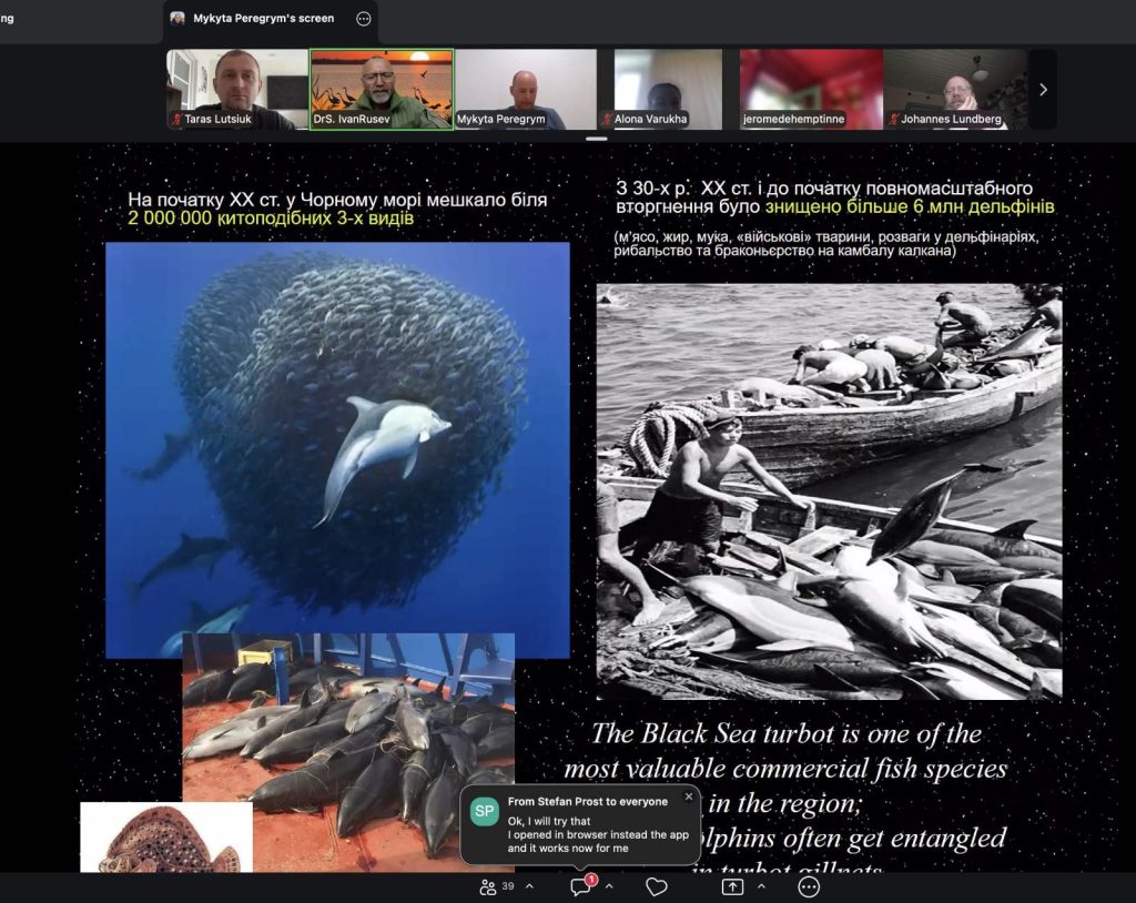 У межах семінару було представлено низку актуальних доповідей. Зокрема, професор Іван Русєв (Національний природний парк «Тузлівські лимани», Одеська область) висвітлив питання впливу війни на біорізноманіття та природні екосистеми Північно-Західного Причорномор’я. У доповіді розглянуто наслідки використання військових технологій для морських екосистем, вплив руйнування Каховської ГЕС, а також екологічні ризики, пов’язані з техногенними аваріями.
