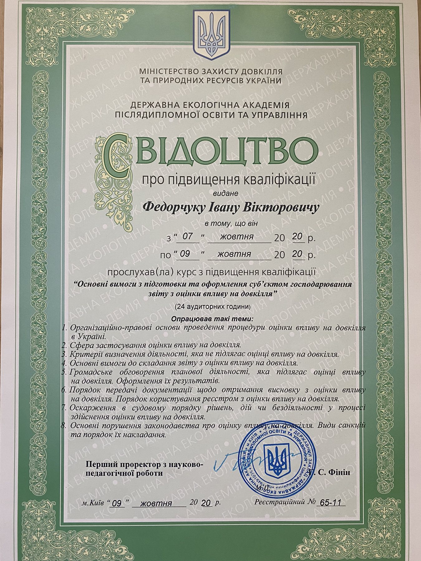 ОСНОВНІ НАВЧАЛЬНІ КУРСИ: Гідрологія. Основи екологічної токсикології. Популяційна екологія. Гідробіологія. Системний аналіз якості навколишнього середовища.