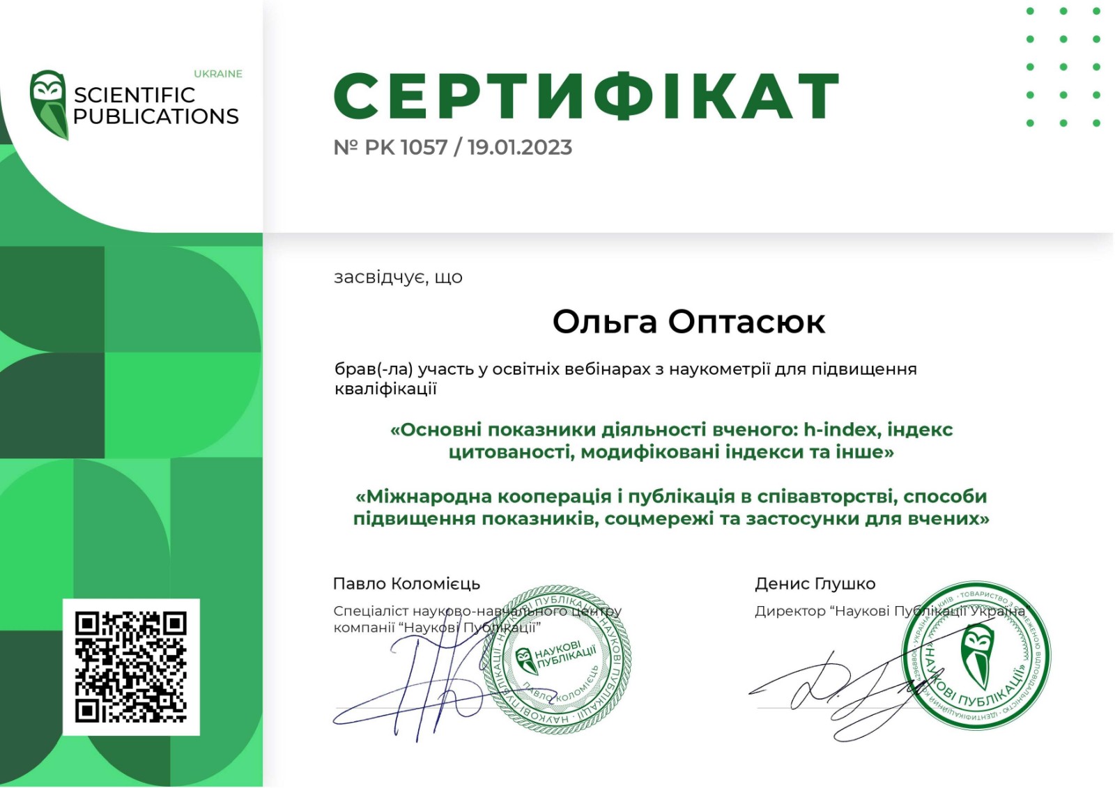 Кандидат біологічних наук з 2008 р. (диплом, ДК № 045069).