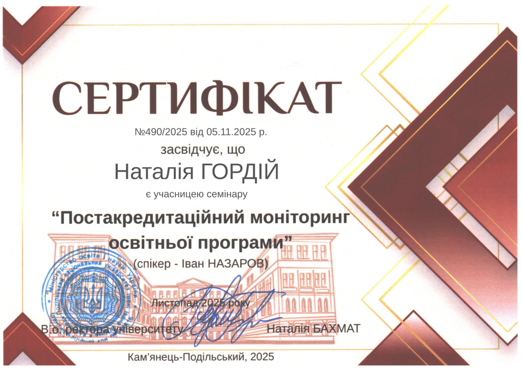 Любинський Олександр Іванович – сертифікат PAEW 2025![]() ![]() |